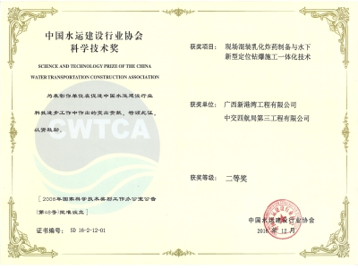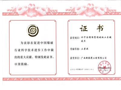 公司自行研制了大孔徑高風(fēng)壓潛孔鉆和GPS定位組合技術(shù)的水下炸礁船,極大的提升了水下爆破施工的效率; 2008年自主研發(fā)、建造了國內唯-的船載混裝炸藥生產(chǎn)加工一體化的炸礁船,確保水下炸礁關(guān)鍵施工工序的進(jìn)度及安全; 2019年初,公司與中國爆破行業(yè)協(xié)會(huì )汪旭光院士合作,成立了廣西區首個(gè)研究工程爆破技術(shù)的院士工作站。