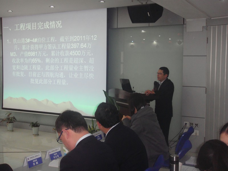 2012年元月13日上午8:30,廣西新港灣工程有限公司2011年年終會(huì )議在公司總部順利召開(kāi),會(huì )議歷時(shí)兩天,出席會(huì )議有:公司執行董事寧旭展、總經(jīng)理姚方明、執行監事汪金良、生產(chǎn)副總經(jīng)理廖烈宏、執行董事助理馬蓉、總經(jīng)濟師胡鑫瑞、公司總部全體人員、各項目經(jīng)理部項目經(jīng)理、助理、船經(jīng)理。