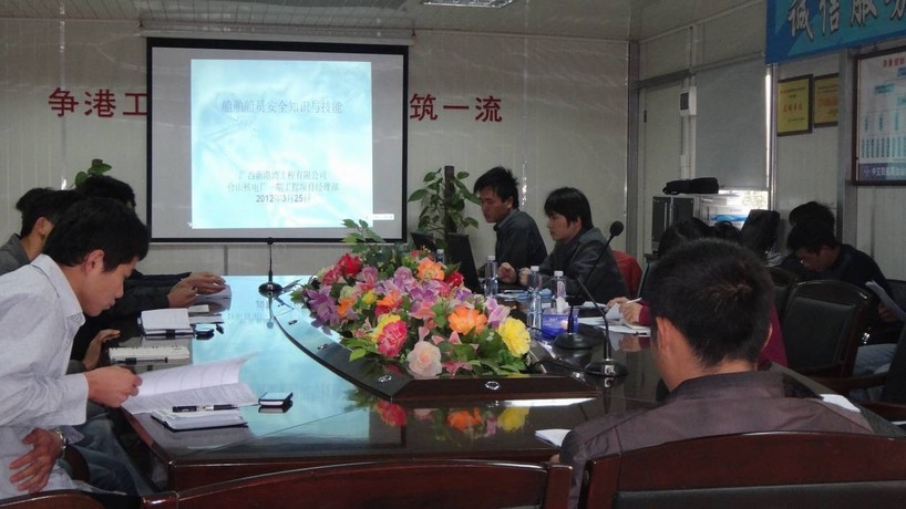 2012年3月25日,在項目經(jīng)理的推動(dòng)及項目部全體人員通力配合下,項目部利用大風(fēng)惡劣天氣無(wú)法施工的間隙,開(kāi)展了船舶船員安全知識及技能暨“5S目視化管理”的專(zhuān)題培訓。主要的培訓內容有:1、船舶個(gè)人安全及社會(huì )責任;2、船舶防火與滅火;