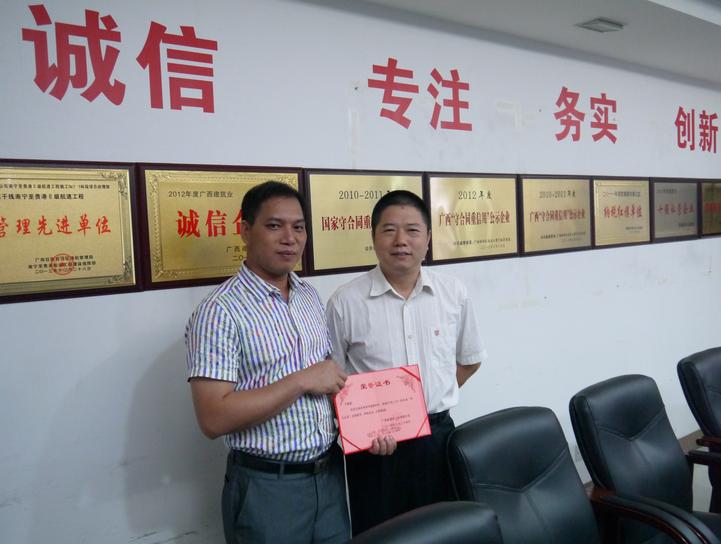 2014年9月24日下午,在新港灣工程有限公司總部會(huì )議室,公司生產(chǎn)副總經(jīng)理廖烈宏先生接見(jiàn)了公司本年度崗位考試中表現優(yōu)異的人員,并進(jìn)行了獎狀及獎金授予儀式。本年度獲得公司“學(xué)習尖兵”稱(chēng)號的人員是新港灣33號船組的船經(jīng)理寧毓愛(ài)。同時(shí)因考試成績(jì)突出,獲得公司公開(kāi)表?yè)P的人員有廖少銳、苗春錄、葉風(fēng)明、張政、莫蘭英等公司學(xué)習精英。