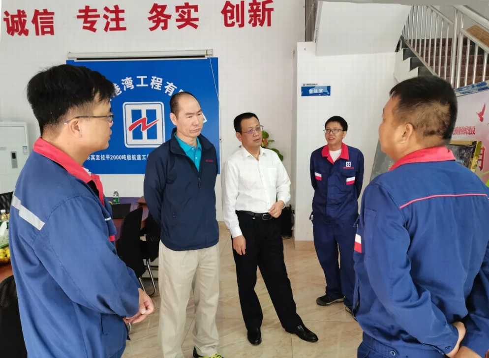2021年10月20日,廣西新港灣工程有限公司創(chuàng )始人寧旭展先生在公司董事長(cháng)姚方明的陪同下蒞臨來(lái)賓至桂平2000噸級航道工程項目部(以下簡(jiǎn)稱(chēng)來(lái)桂項目)現場(chǎng)察看并慰問(wèn)一線(xiàn)員工。