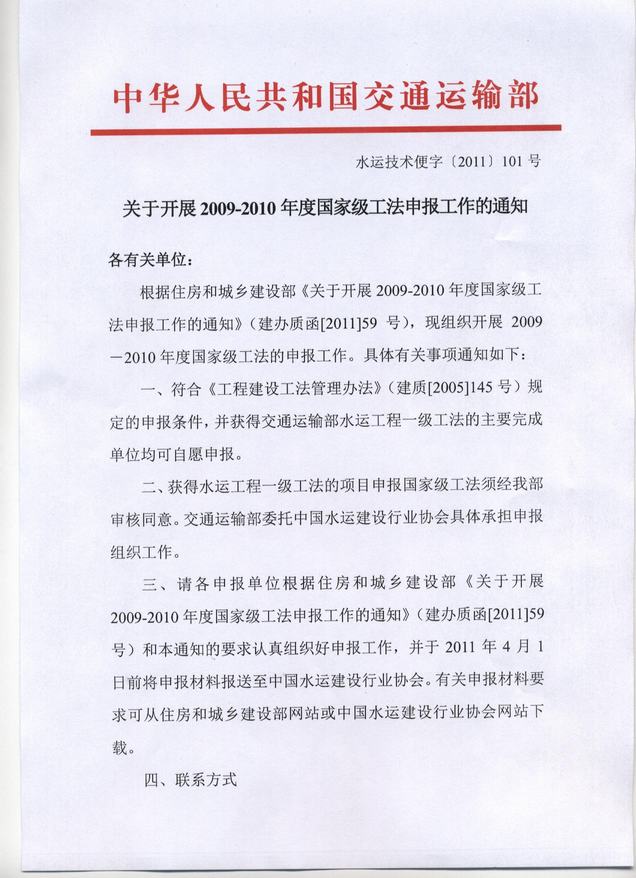 關(guān)于開(kāi)展2009-2010年底國家級工法申報工作的通知